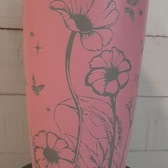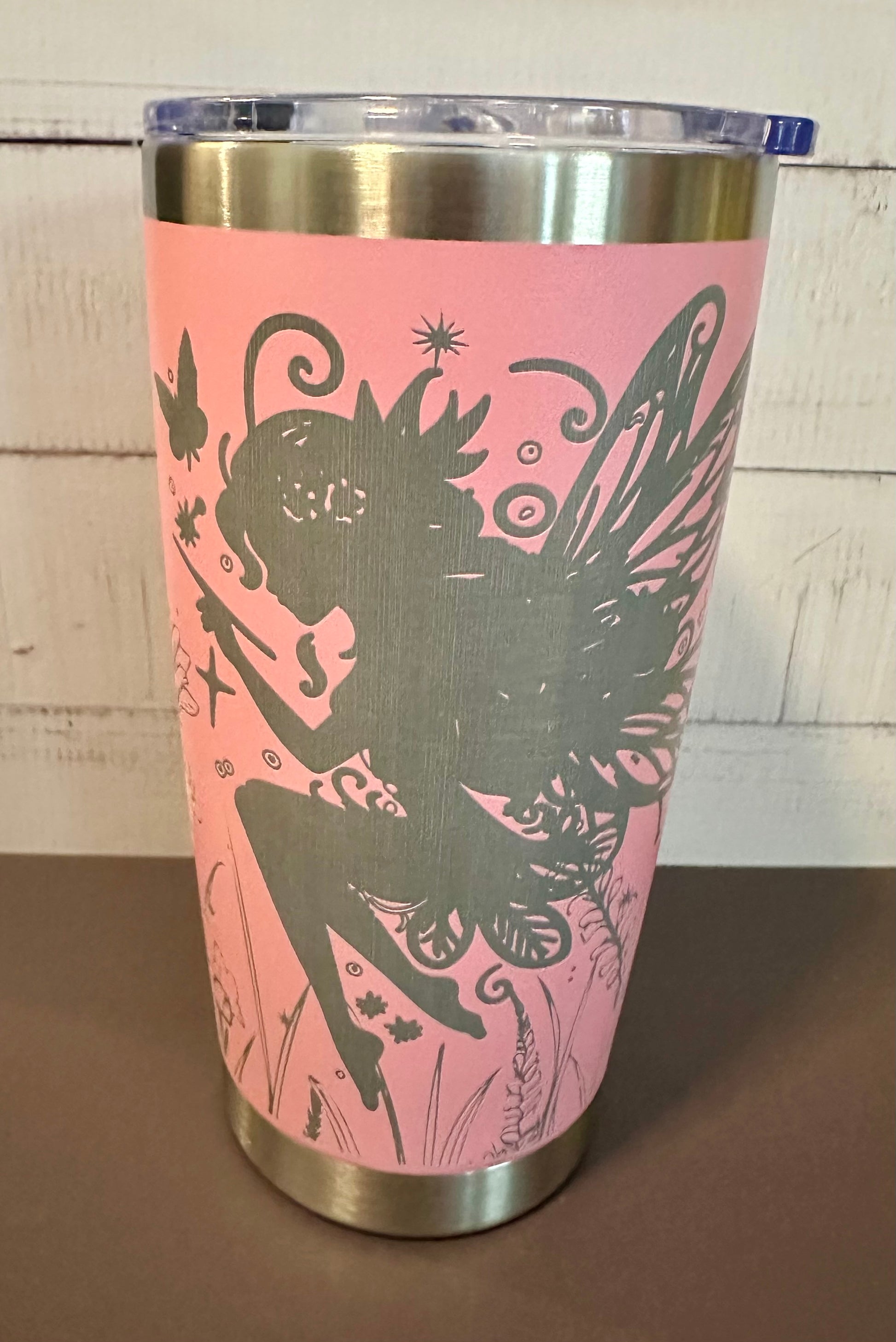 20oz. Insulated Travel Tumbler with Slide Lid - Pink with Fairy and Flowers