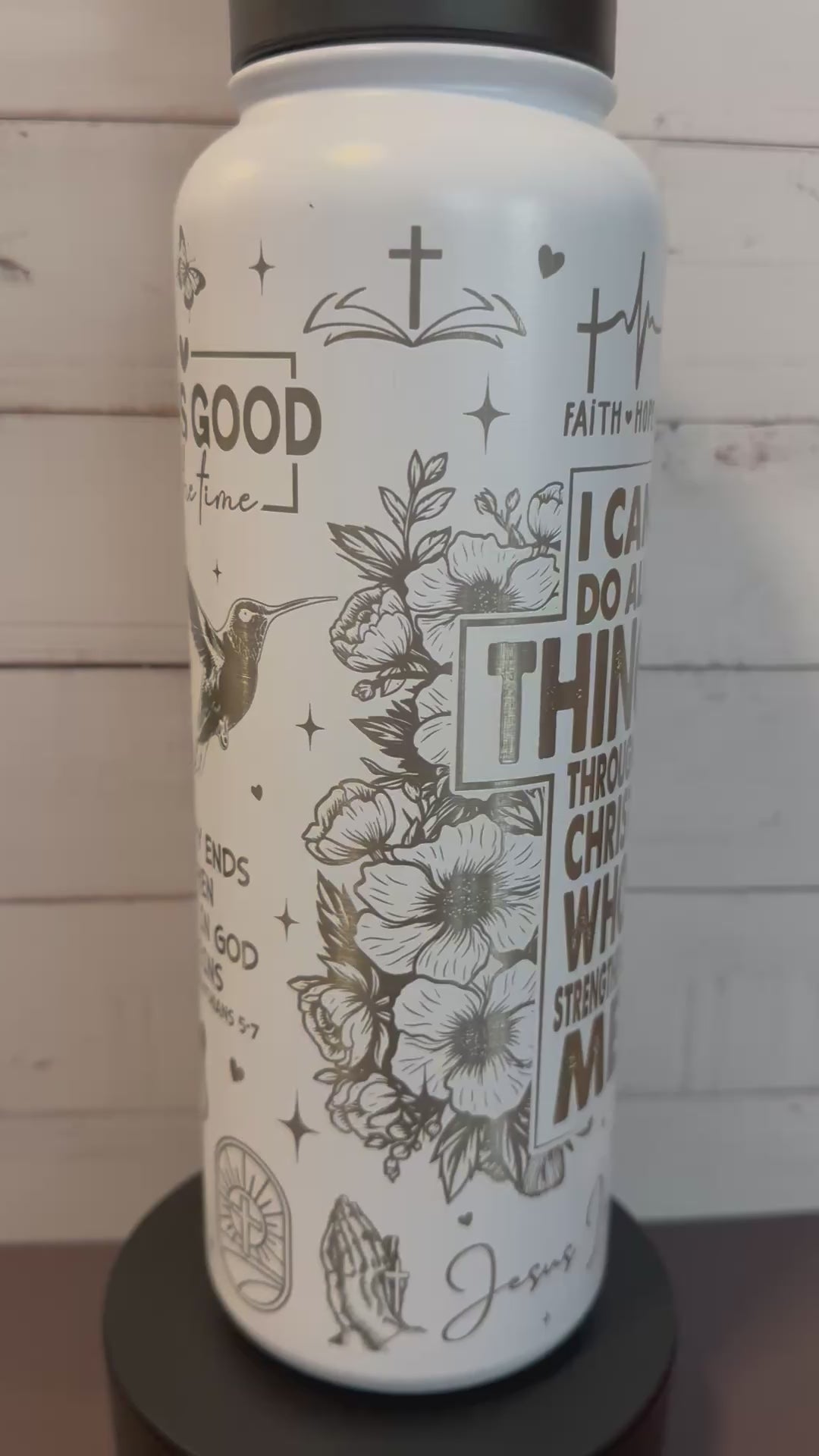 Stay hydrated on-the-go with our 40oz Water Bottle! The bottle features a highly detailed Laser Engraved Full Wrap Around Design.