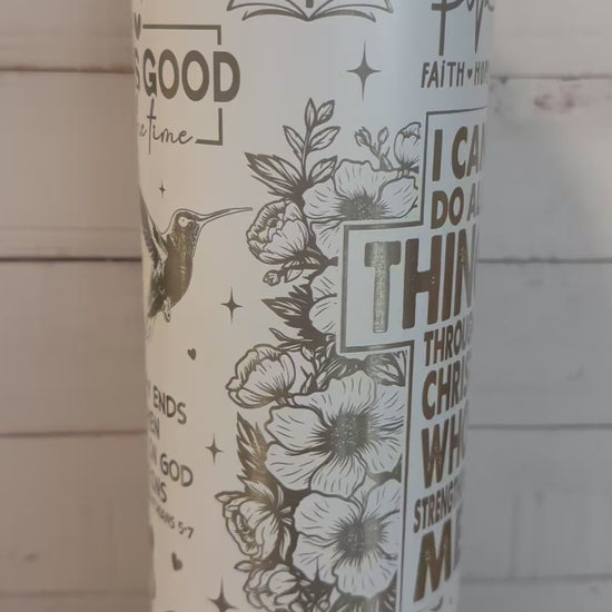 40oz. Insulated Water Bottle with Collapsible Straw Lid - White, Faith and God Collage