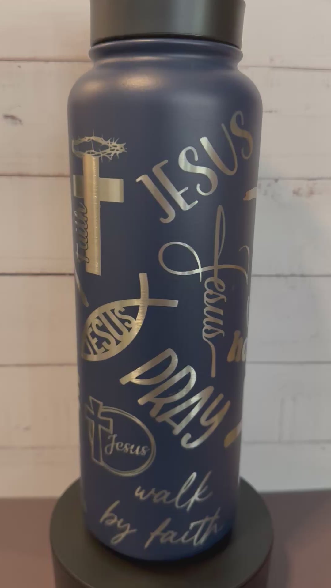 Stay hydrated on-the-go with our 40oz Water Bottle! The bottle features a highly detailed Laser Engraved Full Wrap Around Design.