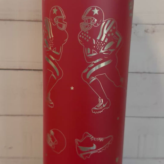 40oz. Insulated Water Bottle with Collapsible Straw Lid - Red, Football Mom