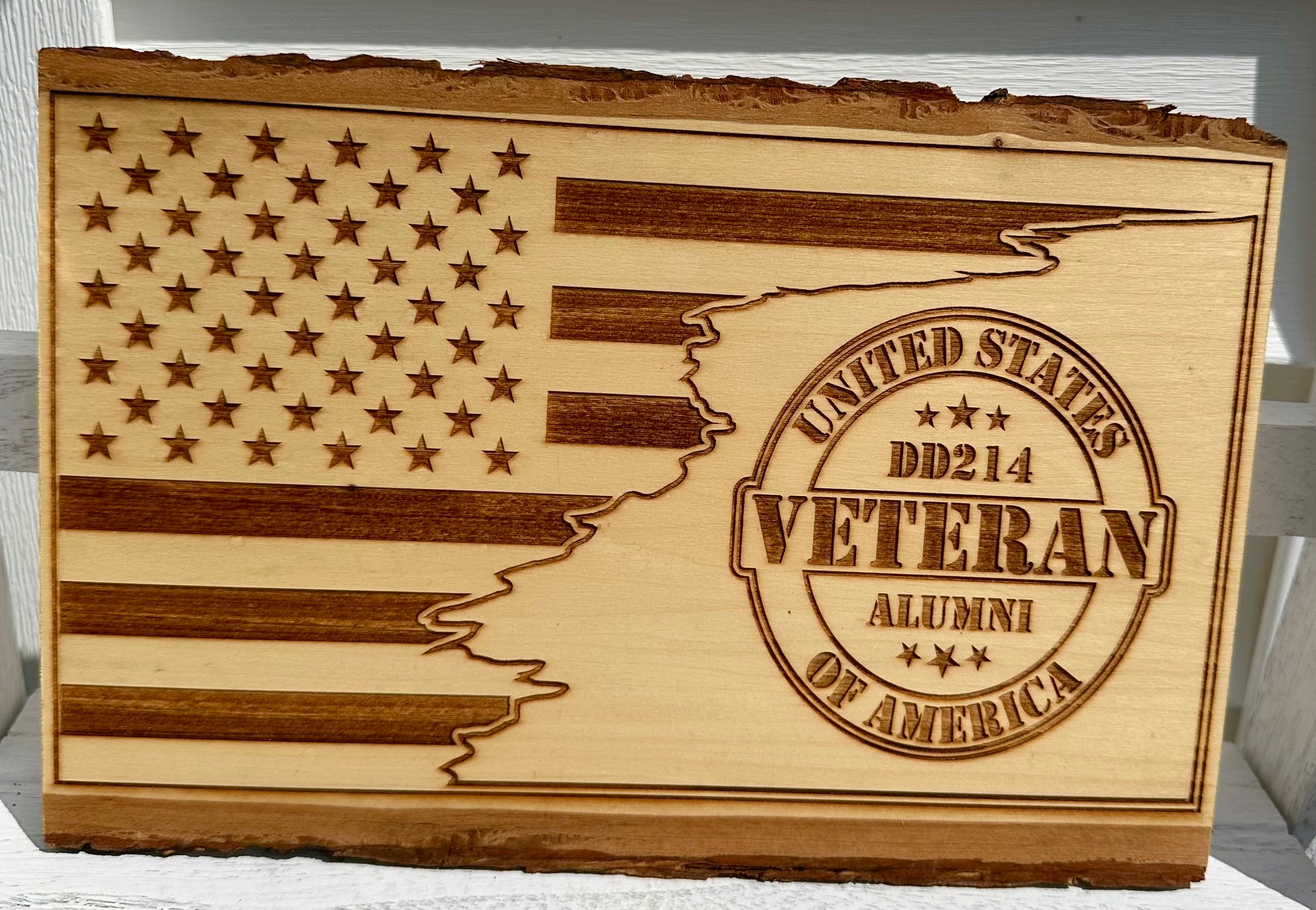 Veteran DD214 with Flag Live Edge Rectangular Plaque
