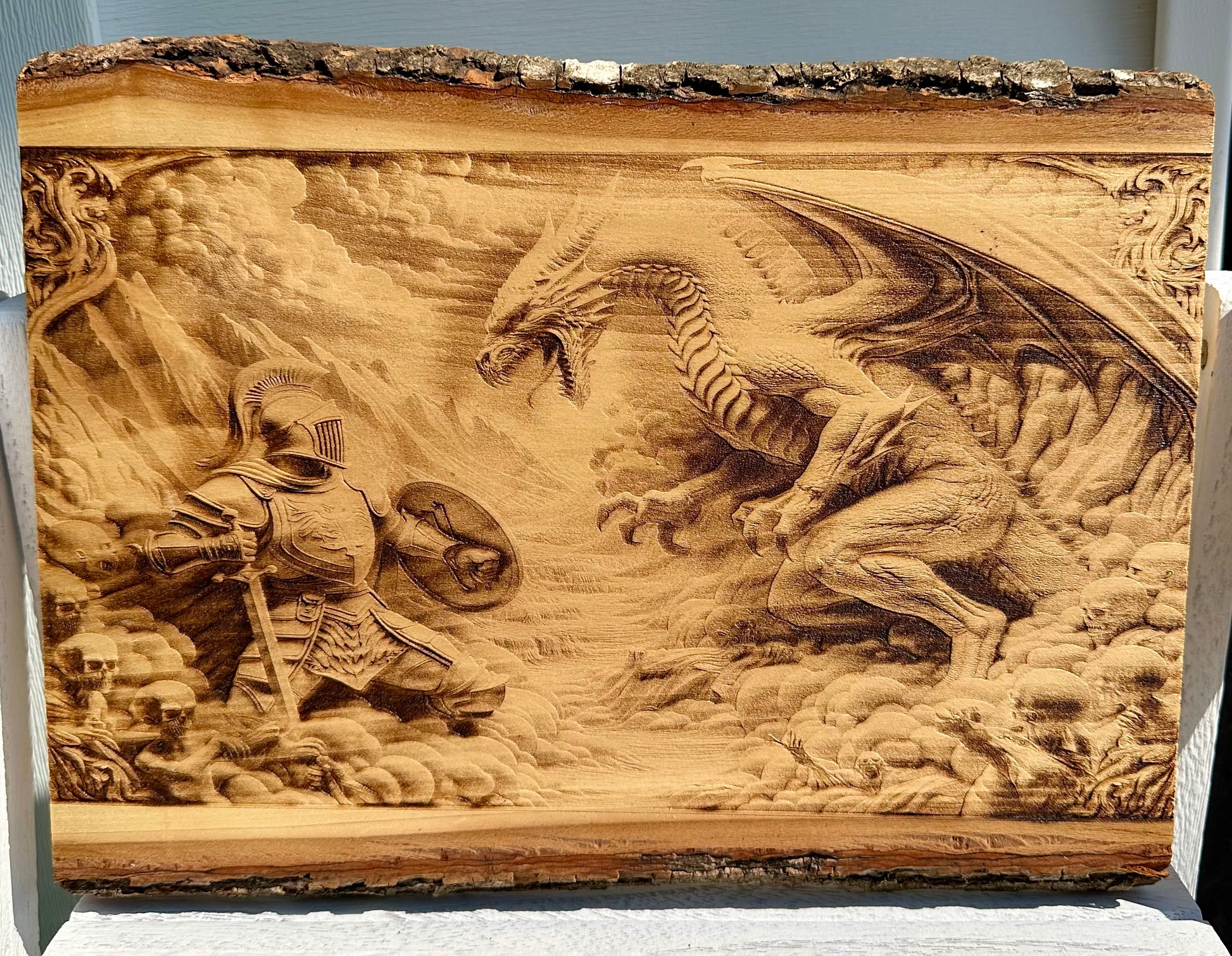 Knight Fighting Dragon Live Edge Rectangular Plaque