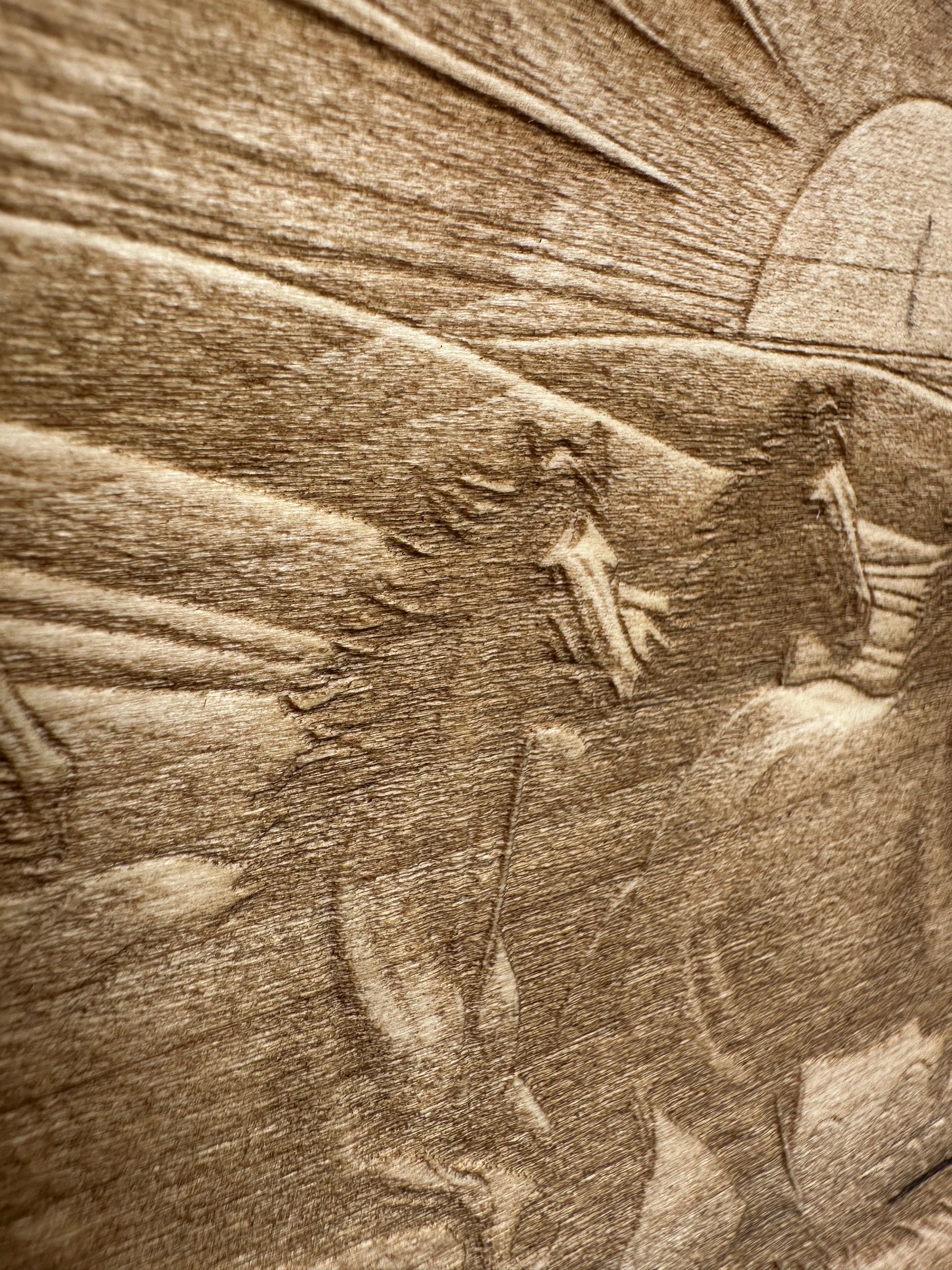 High-definition laser engraved live edge wooden plaque. Plaque is a high-quality basswood and is sealed using a gloss finish clear coat. Ideal for indoor décor, decoratively placing on a shelf or displaying on a wall using the included 1 3/4" sawtooth hanger.