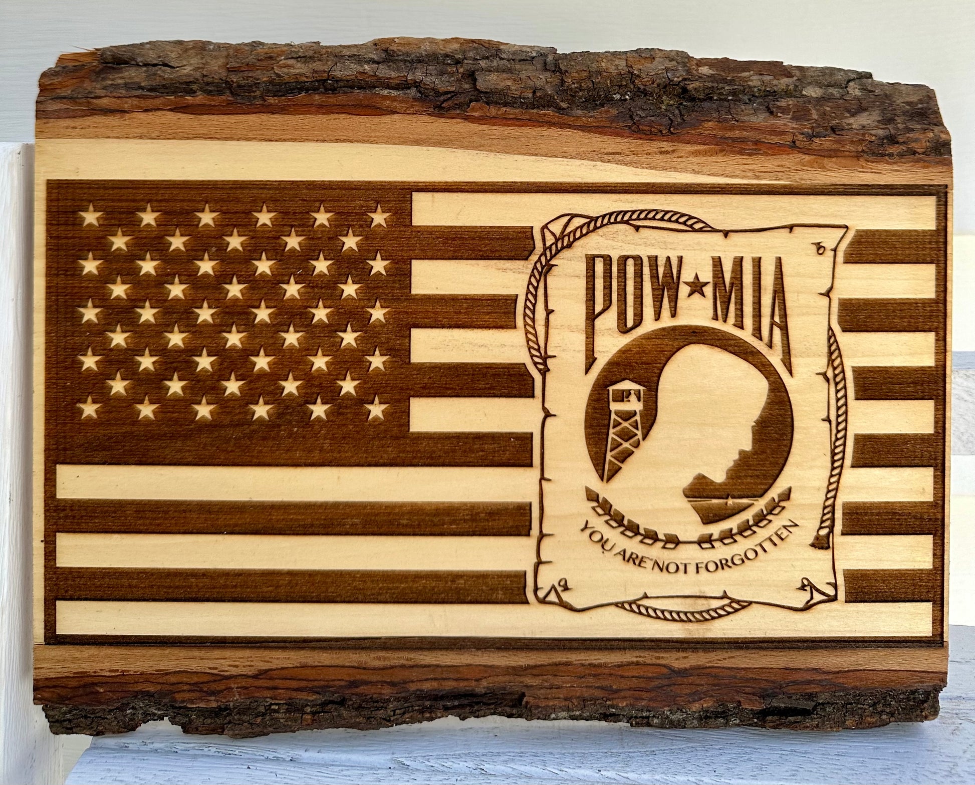 Military POW-MIA with Flag Live Edge Rectangular Plaque