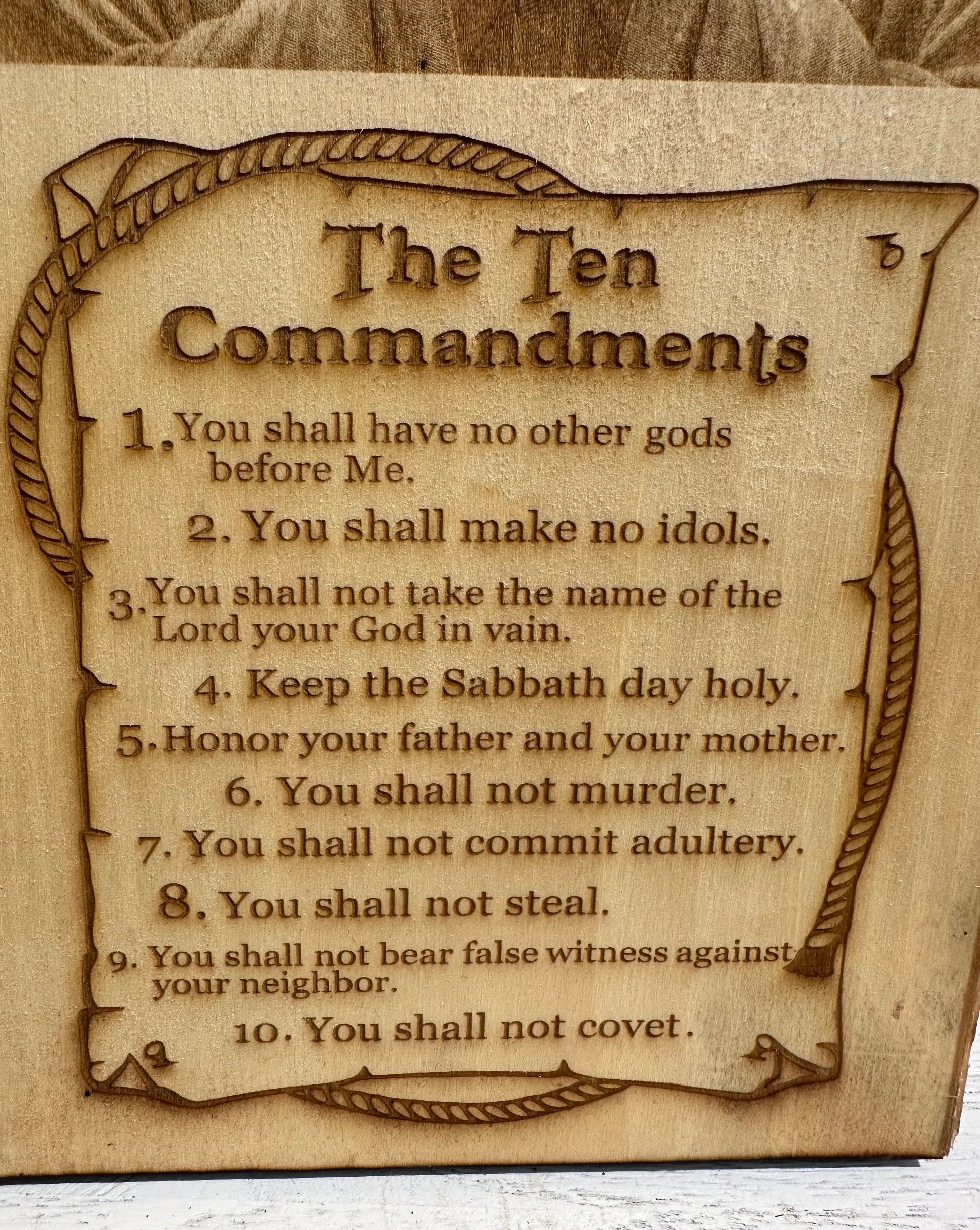 Jesus and Ten Commandments Live Edge Rectangular Plaque