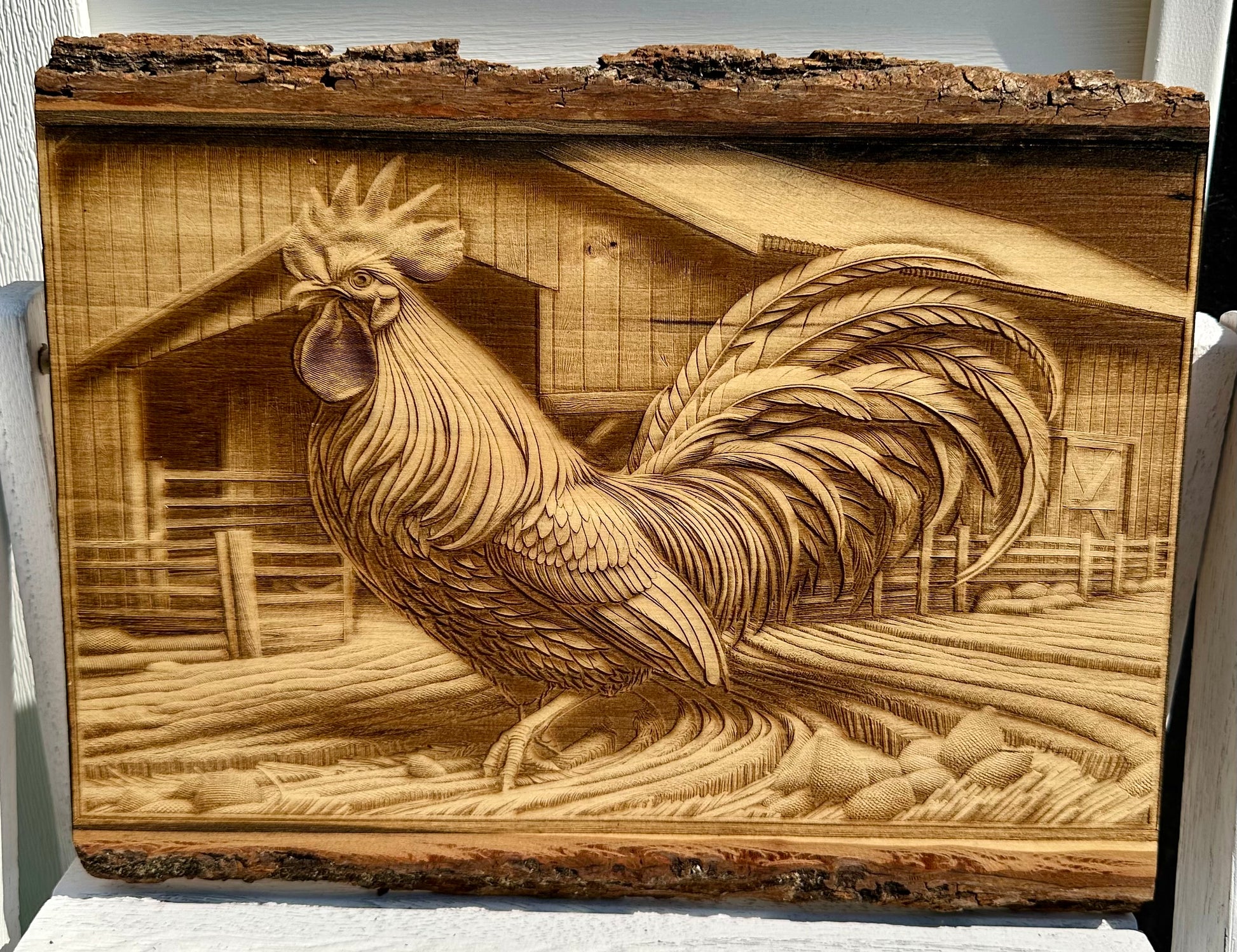 Rooster Live Edge Rectangular Plaque