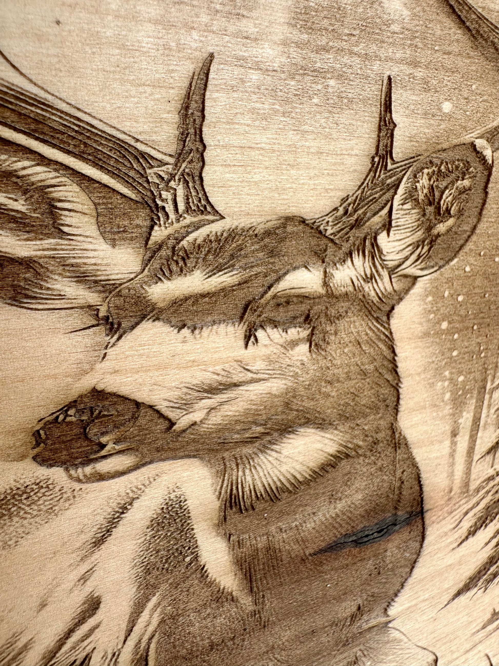 High-definition laser engraved live edge wooden plaque. Plaque is a high-quality basswood and is sealed using a gloss finish clear coat. Ideal for indoor décor, decoratively placing on a shelf or displaying on a wall using the included 1 3/4" sawtooth hanger.