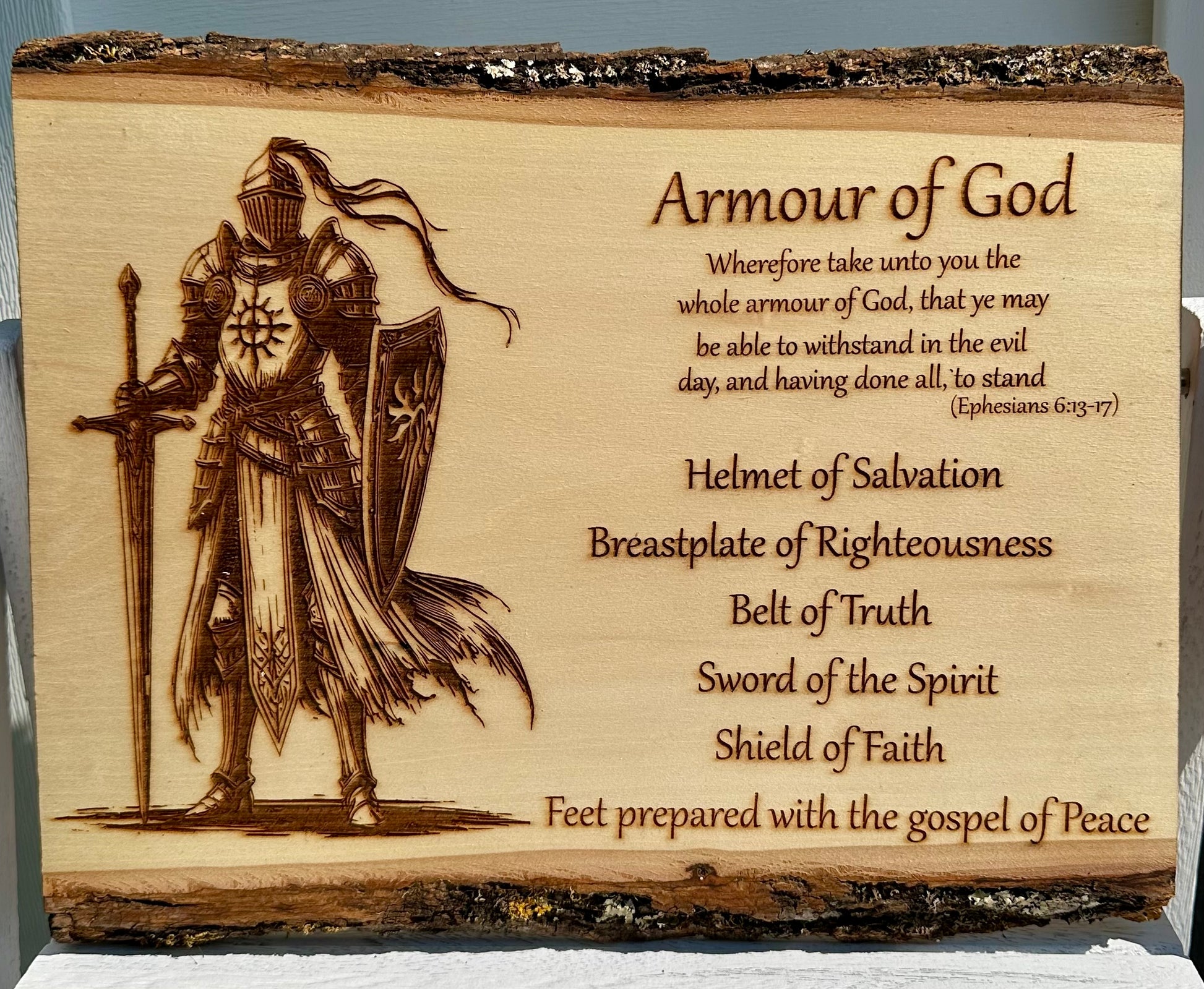 High-definition laser engraved live edge wooden plaque. Plaque is a high-quality basswood and is sealed using a satin finish clear coat. Ideal for indoor décor, decoratively placing on a shelf or displaying on a wall using the included 1 3/4" sawtooth hanger.