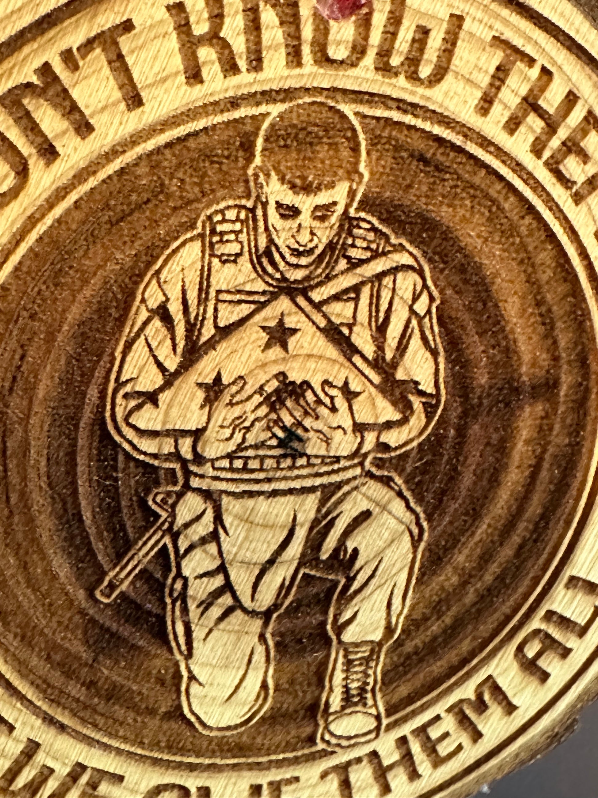 Engraved Live Edge Wooden Round Ornament - We Owe Them All