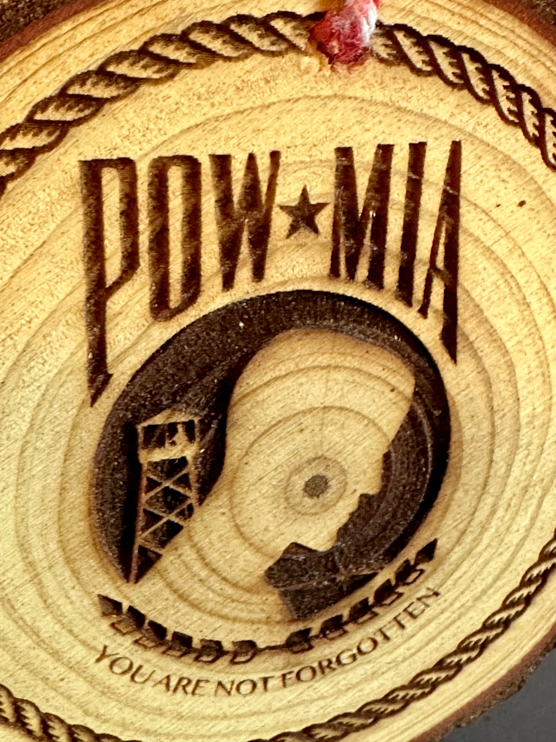 Engraved Live Edge Wooden Round Ornament - POW-MIA