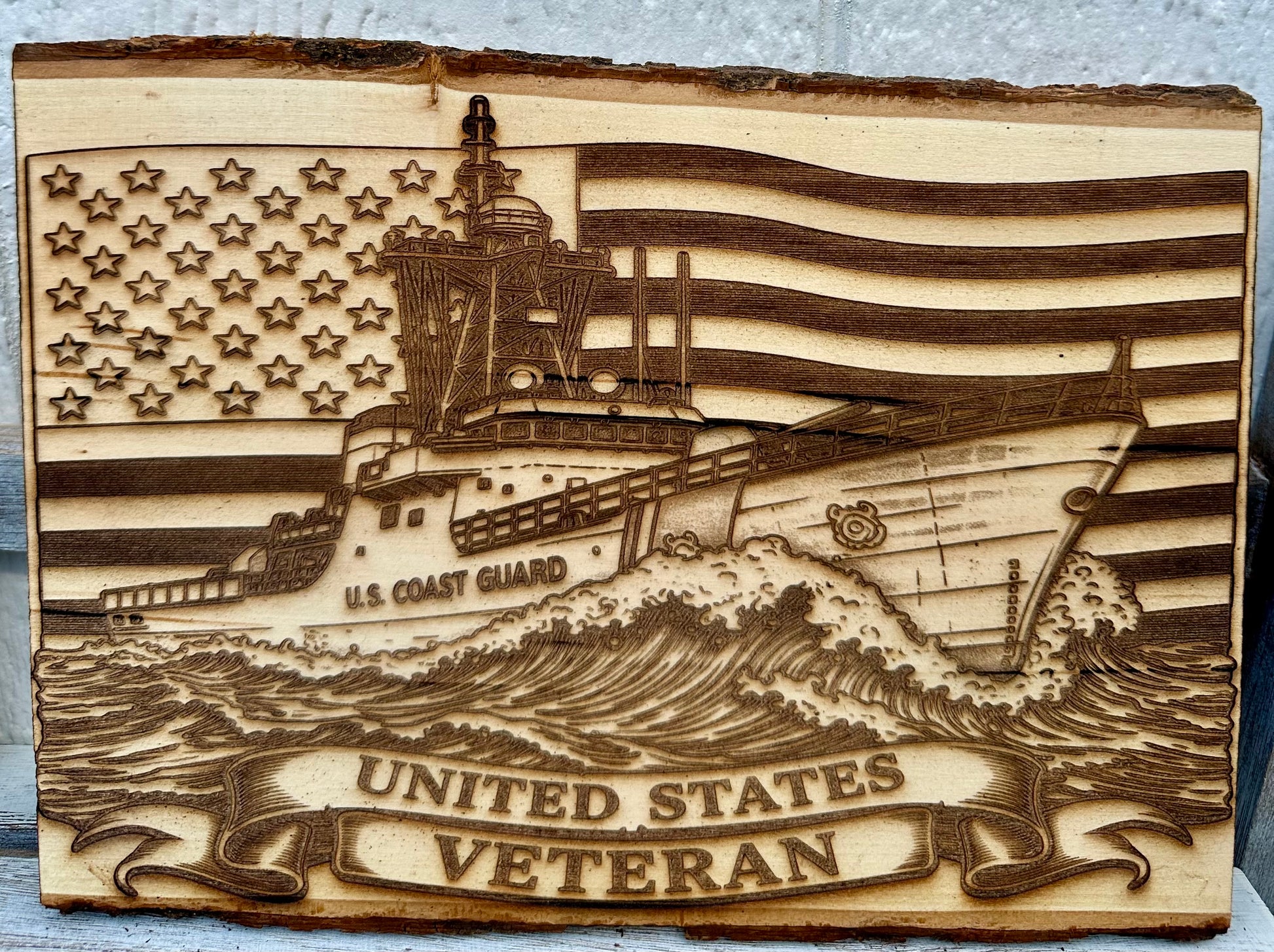 Military Veteran Coast Guard Cutter with Flag Live Edge Rectangular Plaque