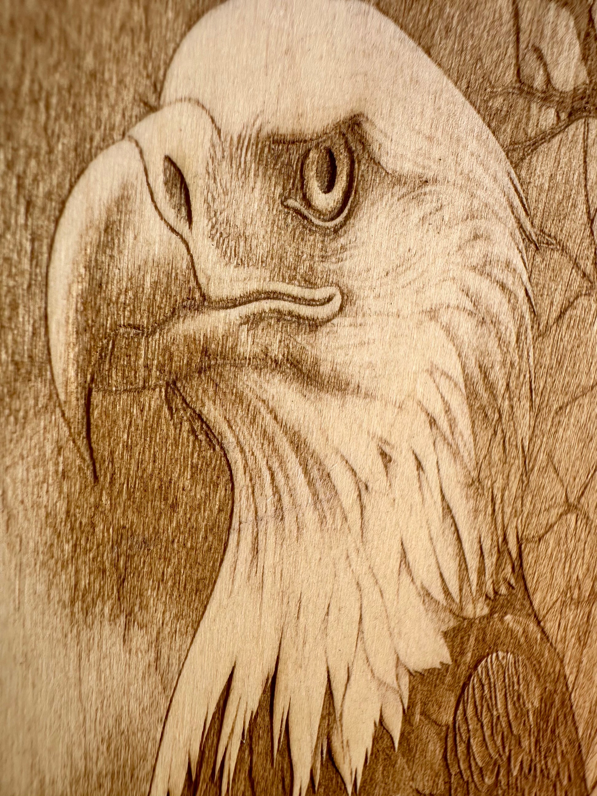 High-definition laser engraved live edge wooden plaque. Plaque is a high-quality basswood and is sealed using a satin finish clear coat. Ideal for indoor décor, decoratively placing on a shelf or displaying on a wall using the included 1 3/4" sawtooth hanger.